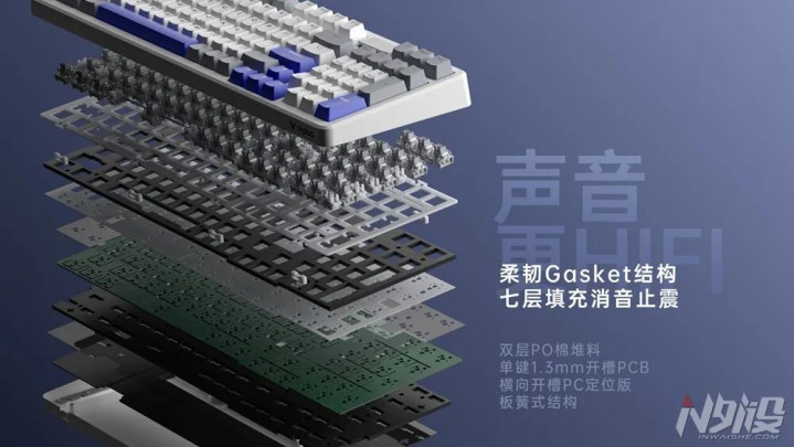 · HIFI手感:7层消音填充+Gasket结构,双层Poron棉,有效减少空腔音,提供一致HIFI音效