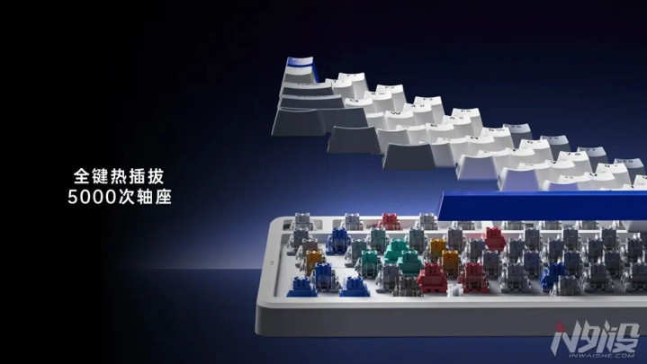 · 高度客制化:全键热插拔、5000次轴座兼容更多轴体、A hub自研驱动生态,紧凑布局保留独立方向键与数字区,兼顾空间效率与实用功能。